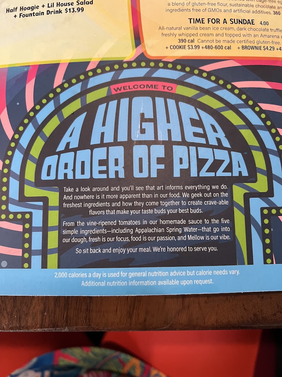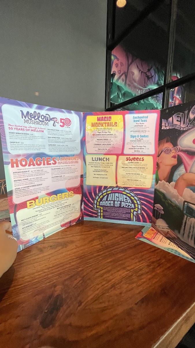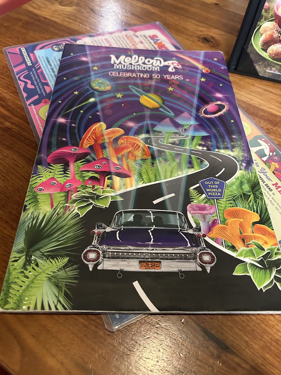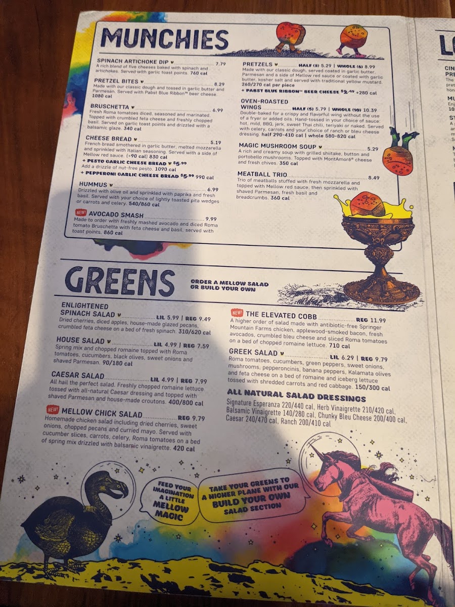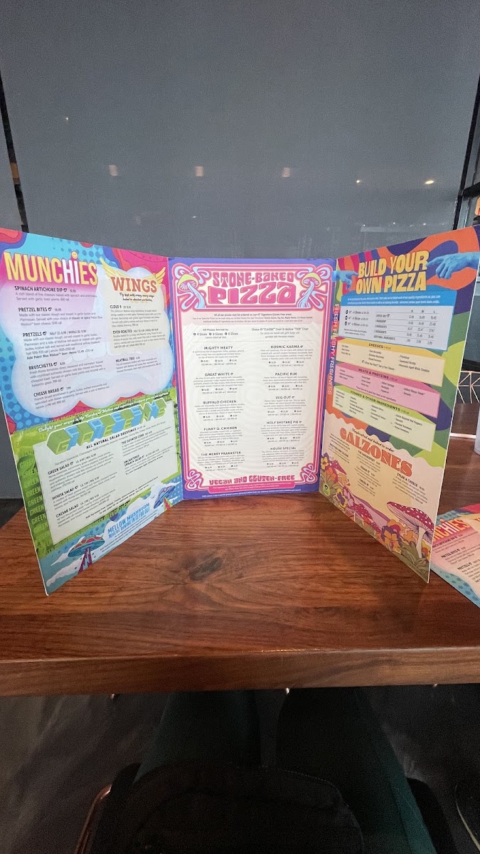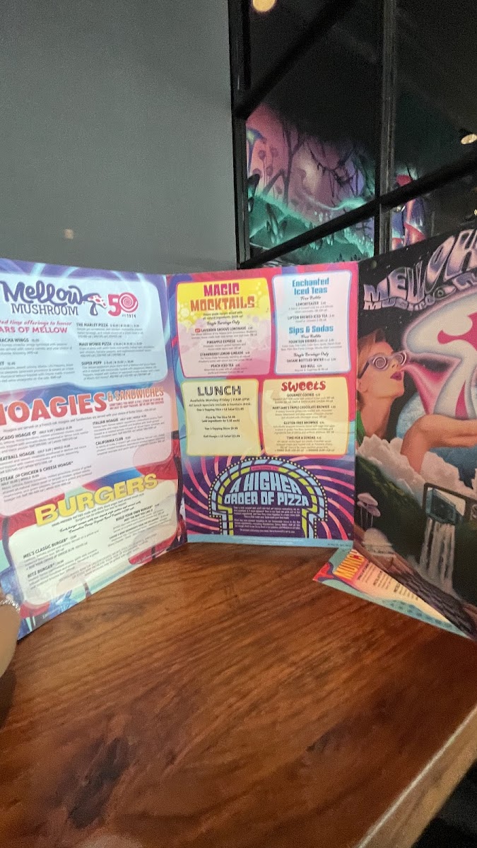 “ So sorry we did not get photos of inside the restaurant, or the food, this time. We've been to a few Mellow Mushroom locations, all of which have provided delicious pizza. What was a pleasant surprise was the delicious Caesar salad! It is definitely worth ordering. The mighty meaty pizza couldn't have been more perfect with the regular crust. How do they get it crispy on the bottom and light/springy on the edges??? The only disappointing thing, which wouldn't keep us from going back, is the decor. The decor isn't what we're used to with Mellow Mushroom. We miss the colorful, trippy vibe. There is a wall painted like a dark, enchanted forest, though. ”